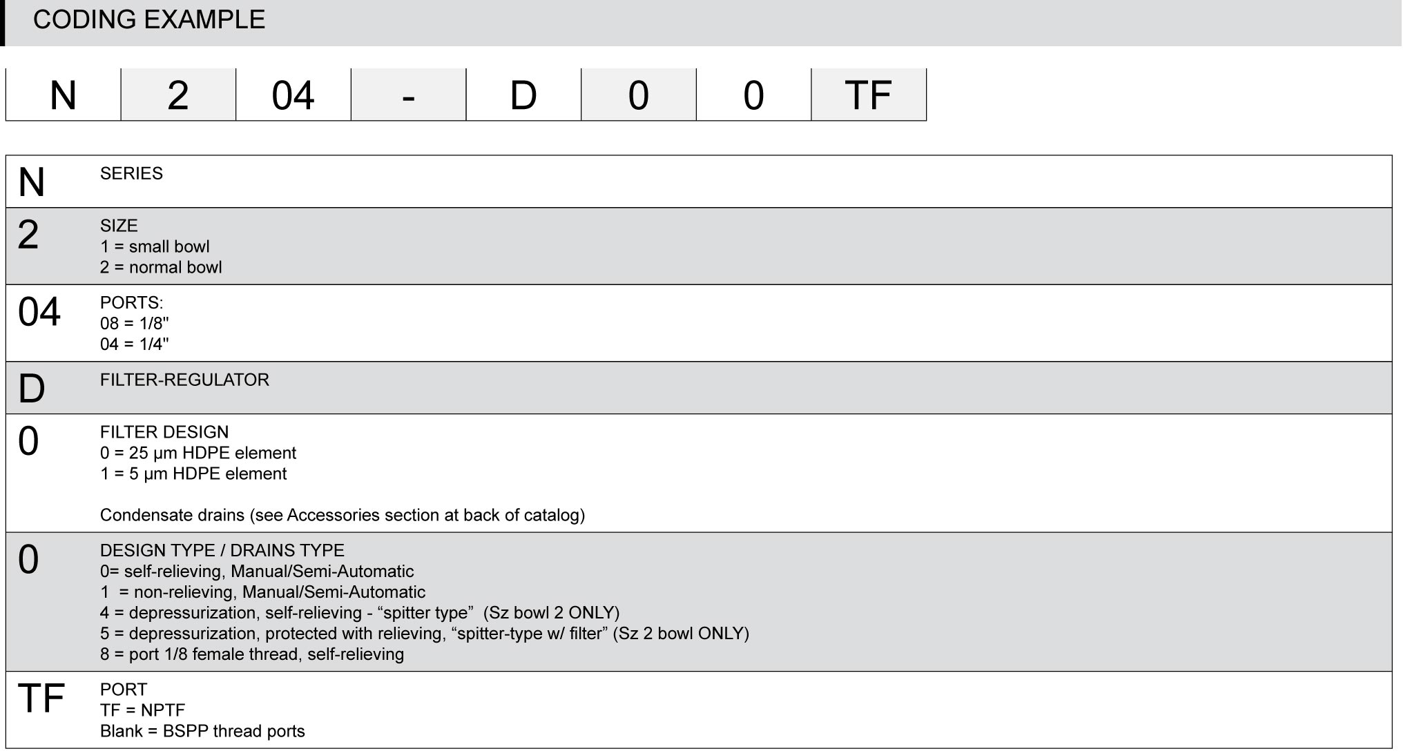 The Series N filter/regulator is available with 1/4", 1/8" NPTF ports.