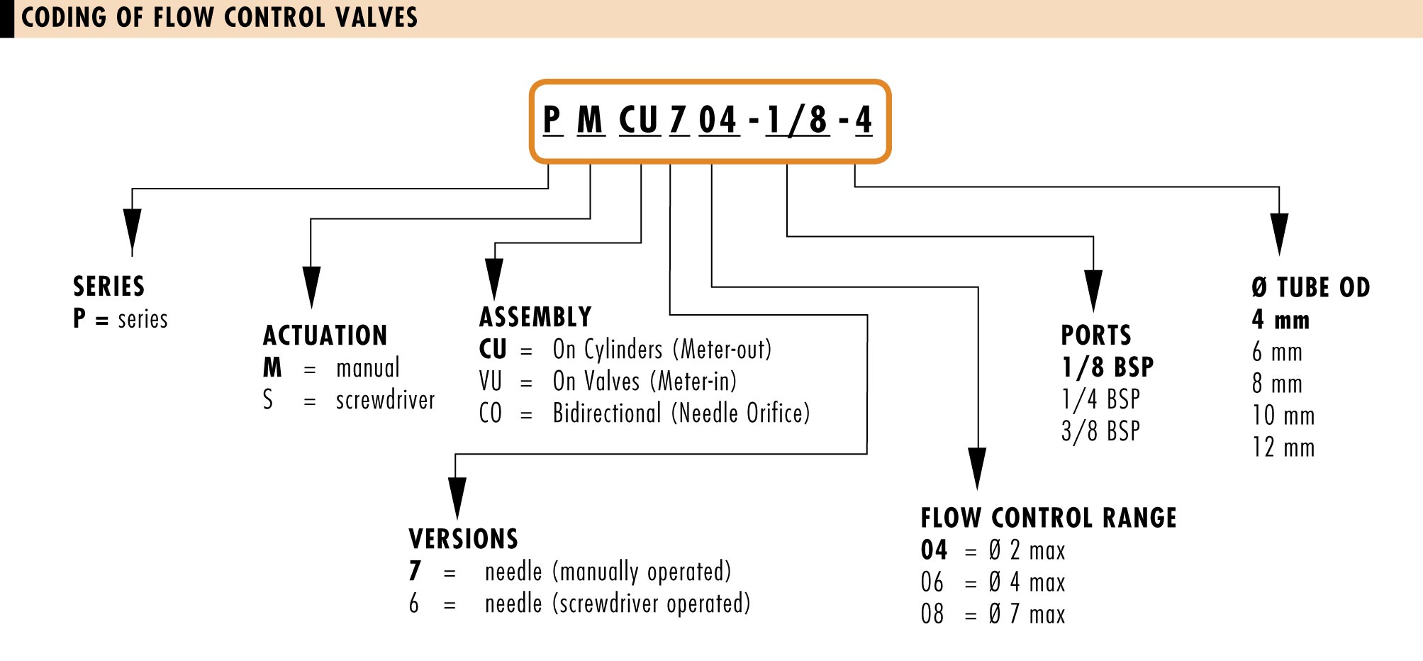 Valve group unidirectional and bidirectional controller (Meter-out, Meter-in, Needle Orifice)