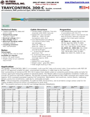 HELUKABEL<K> TRAYCONTROL 300-C is a screened, multi-core PVC data and control cable. Cross-sections with PLTC-ER