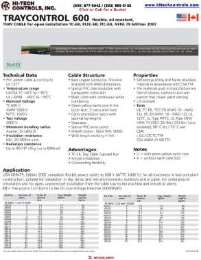 TRAY CABLE for open installation TC-ER, PLTC-ER, ITC-ER, NFPA 79 Edition 2007