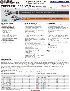 Max. 250 Ohm/km Control cores stranded in pairs and Class 1 Div. 2 per NEC Part nos. 336,