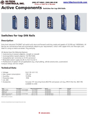 Entry level industrial ETHERNET rail switch with store and forward switching mode and speeds of 10/ 100 and 1 OOOMbiVs. All