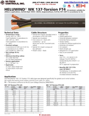 The HElUWIND· WK 137-Torsion FT4 cable type was designed specifically for global use in wind turbine.