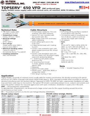 Special TPE outer jacket • VFD = Variable Frequency Drive