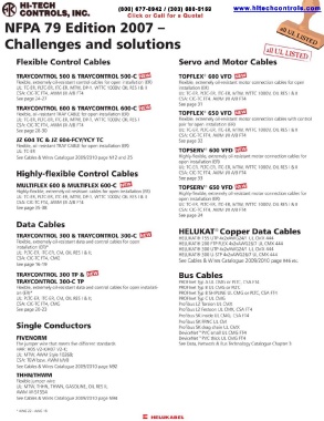 See Cables & Wires Catalogue 2009/20 I 0 page N 12 and 25 Highly-flexible. extremely oil-resistant motor connection cables for