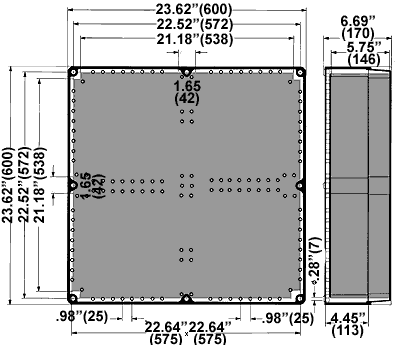 Mi 0800, Empty Enclosure, Housing/Lid: Polycarbonate (Opaque/Transparent), Type NEMA 4x, (IP65) Useable Space: (W) 22.64"(575) x (H) 22.64"(575) x (D) 5.75" (146) with Transparent Lid