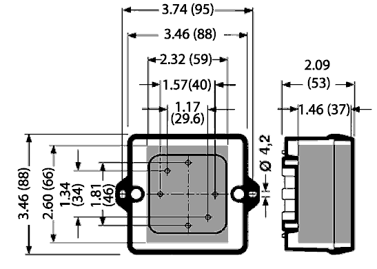 W 3.46" (88 mm) x H 3.46" (88 mm) x D 2.09" (53 mm)