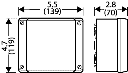 K 8060, Liquid Tight Polystyrene Enclosures (Indoor Installations): Smooth Wall (No Knock-Outs) Dimensions: (W) 5.5"(139) x (H) 4.7"(119) x (D) 2.8"(70), without Terminal Blocks, IP 65