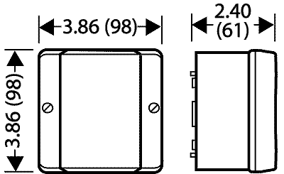 W 3.86" (98 mm) x H 3.86" (98 mm) x D 2.40" (61 mm)